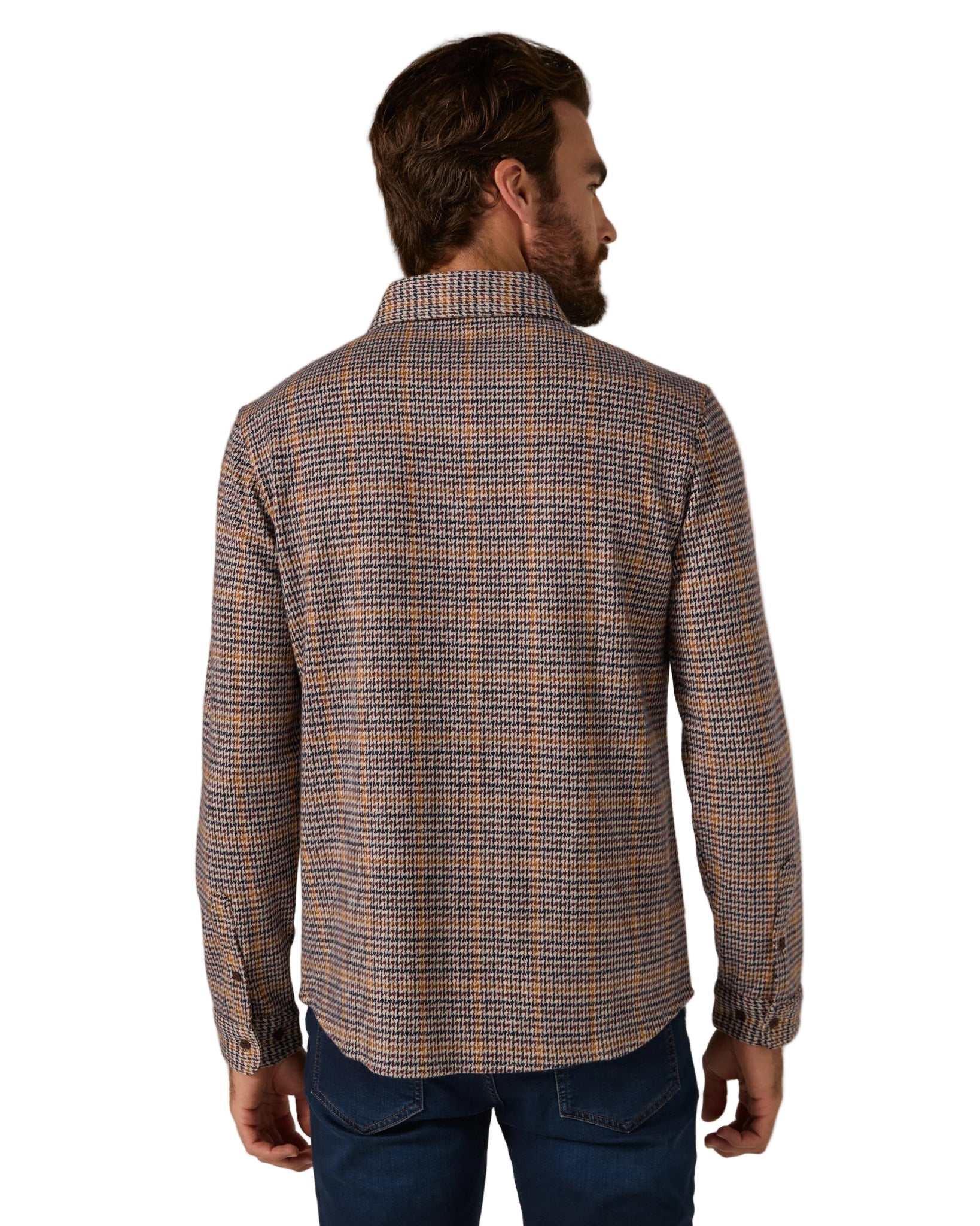 This soft-touch, double-knit jacquard shirt pairs a designer-made plaid pattern with 4-way stretch for all-day comfort. Finished with chest flap pockets, faux-horn buttons, and a curved hem for a clean, tailored look.