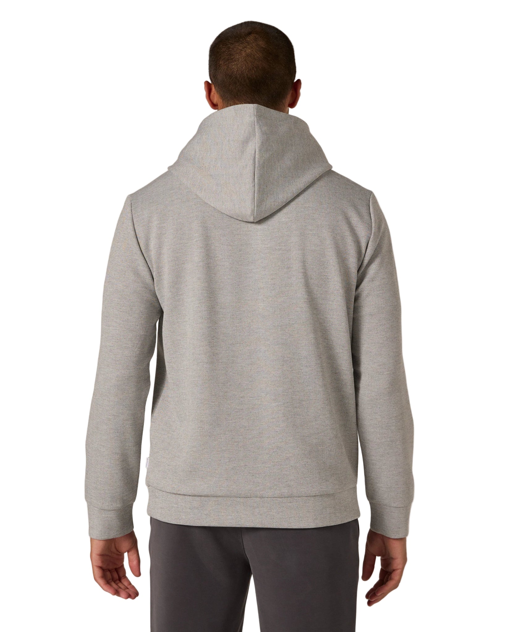 A modern layering piece, this herringbone double-knit hoodie features a crossover hood and pullover design. Made with 4-way stretch for the perfect balance of flexibility and recovery, it delivers an incredibly soft hand feel and looks just as sharp on its own as it does layered.