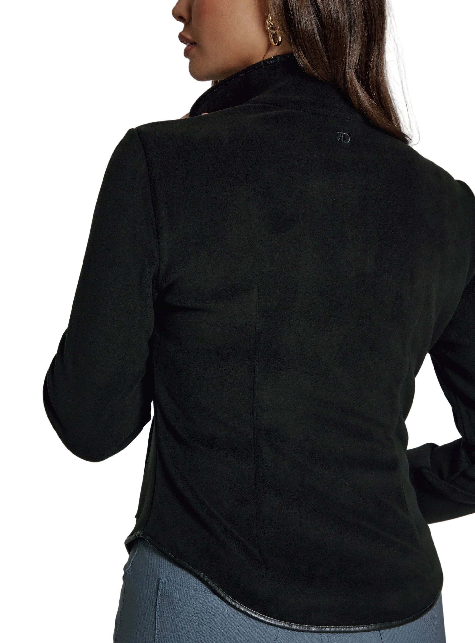 An everyday on-the-go jacket crafted with 2-way stretch fabric. Features full-zip closure, zip-up pockets, and faux leather trim. Great for a sleek office look or a night out ensemble.