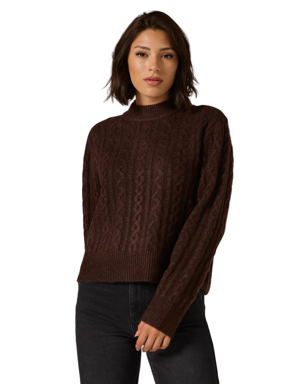 7 Diamonds Women’s Riley Cable Knit Sweater Walnut