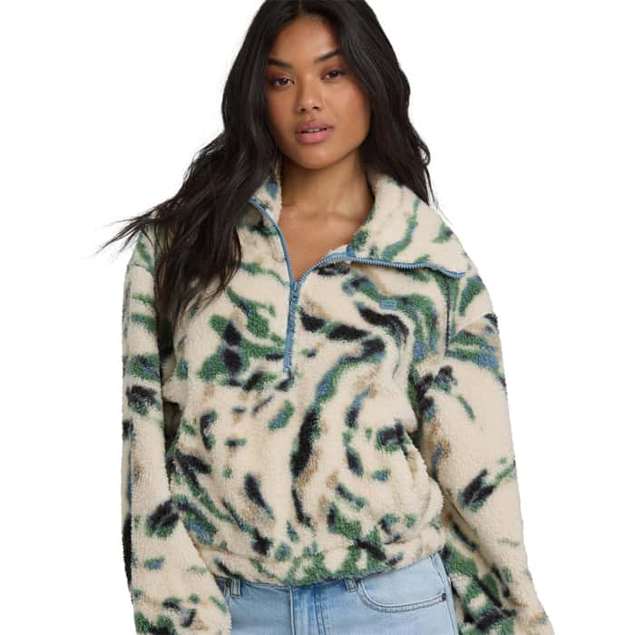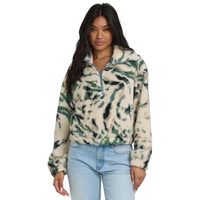 Billabong elevates casual comfort in the Barra Half Zip Pullover, featuring plush recycled polyester fleece, snap neckline, kangaroo pocket, and subtle branding for a cozy yet stylish layer that suits both mountain trails and laid back days with ease
