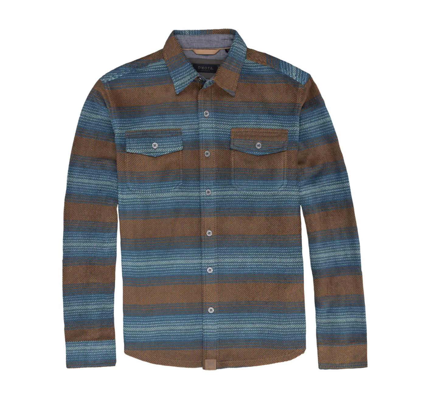 Dakota's button up BOWIE blanket shirt returns in a panoramic assortment of soft, heathered mountain stripes. The stretch-with-you comfort has made this DKOTA original a nationwide, three-season favorite.