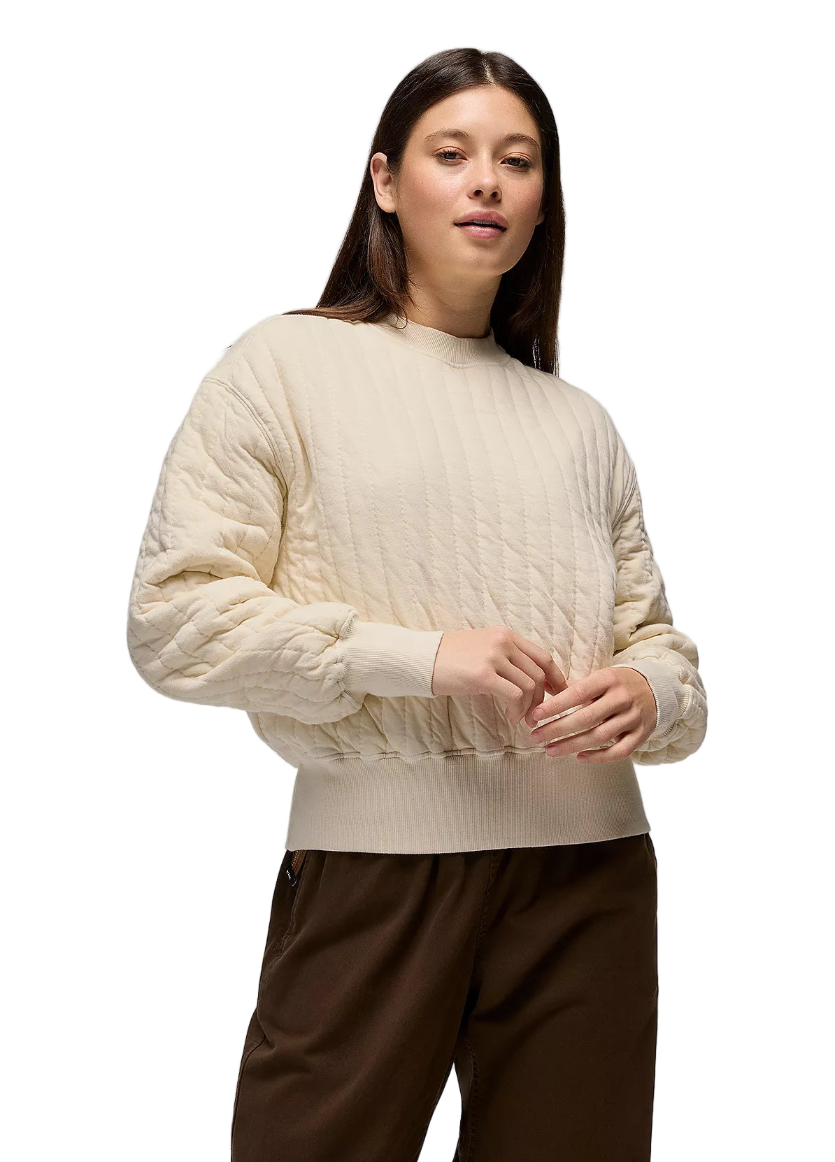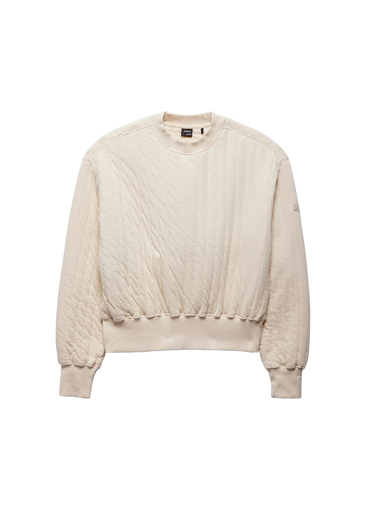 Take coziness to go with the Cedar and Sage Pullover. Crafted with an organic cotton blend, this women’s crewneck has plush vertical quilting and a relaxed fit that feels like cuddling up in your favorite blanket. Treated with a rich garment dye, we love wearing this over our favorite studio sets before and after workout classes.