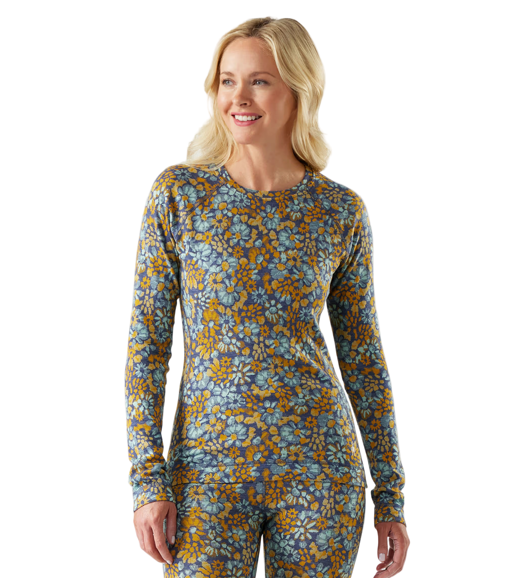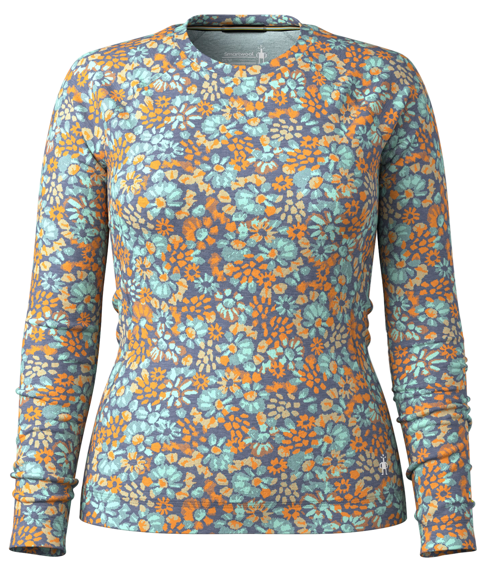 Smartwool Women's Classic Thermal Merino Base Layer Crew Pacific Blue Floral